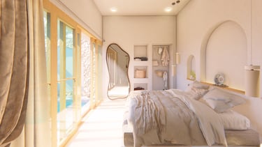 This is a Mediterranean-style villa project located in Gili Trawangan, Indonesia. The goal was to create a calm, bright, resort-like home that still feels practical to build and maintain in an island setting.