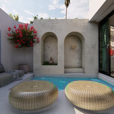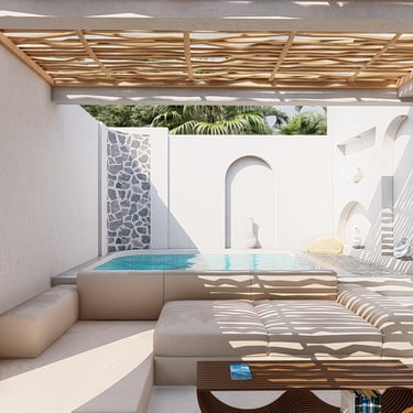 I translated the Mediterranean character through clean massing, light-toned finishes, carefully sized openings, and warm details. The atmosphere is meant to feel relaxed and airy, suited to a coastal context. Outdoor living is treated as a core part of the experience—moving naturally from interior spaces to terraces, then into the pool and landscape zone.